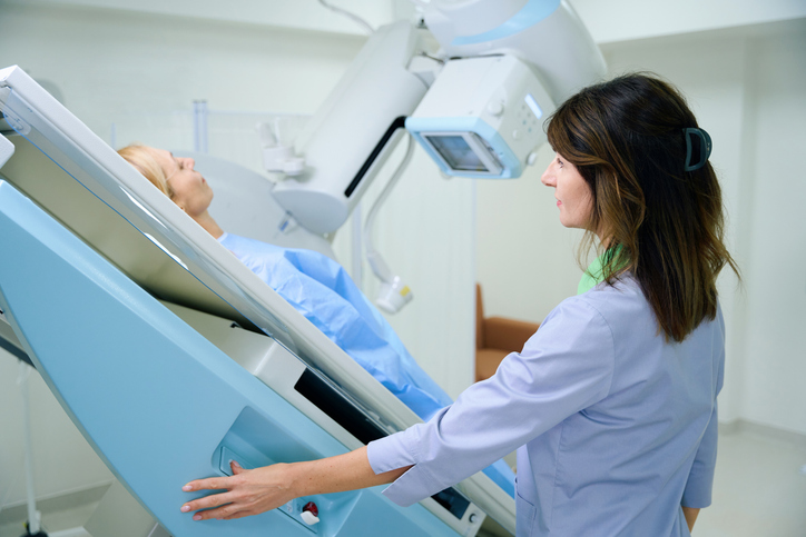 - You will lie flat on a motorized table equipped with straps for safety. Your feet will be positioned on a foot rest.